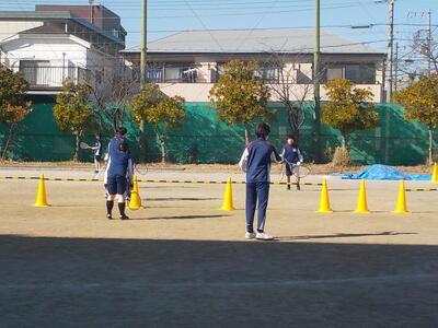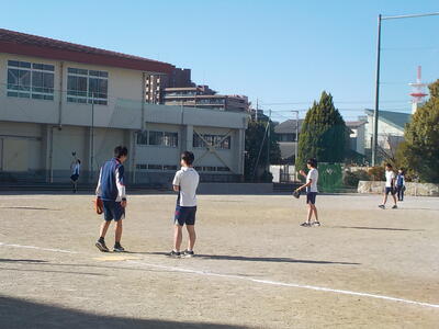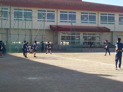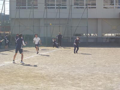 3年生が北風吹くグラウンドで体育の授業をしていました。疲れる・フラフラ