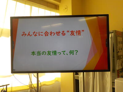 生徒指導主任が1年生に道徳の授業をしていました。テーマは ↓