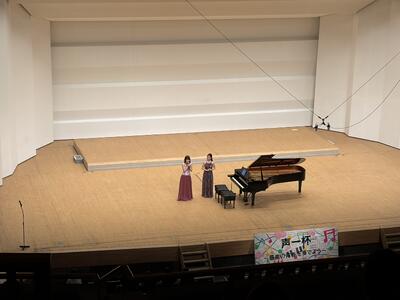 合唱の採点集計の間、プロの演奏家さんのピアノ連弾を聴きました。