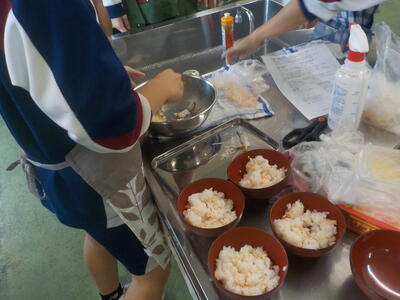 温かいご飯は、心も体も温まりますね。協力して作っていました。