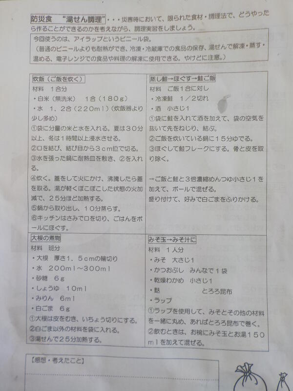 電気を使わず、火のみでご飯を炊いて煮物と味噌汁を作りました。