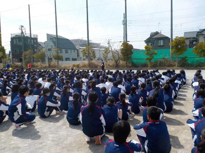全校生徒が避難するまで、3分50秒。安全に素早く避難できました。