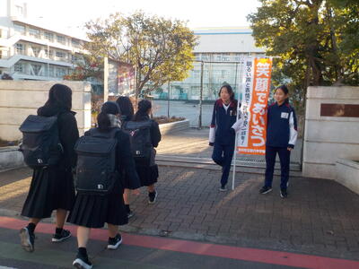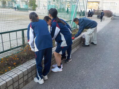 寒い朝でしたが、50人近くの生徒があいさつ運動や草取りをしてくれました。