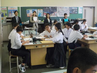 生徒が下校後は、小学校の先生方と情報交換や指導方法について話し合いをしました。大変有意義な研修でした。