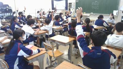 今回は、1校時から5校時までの間、保護者の方に自由に参観していただくかたちで行いました。(下の写真は当日の授業風景です)
