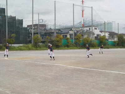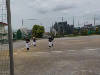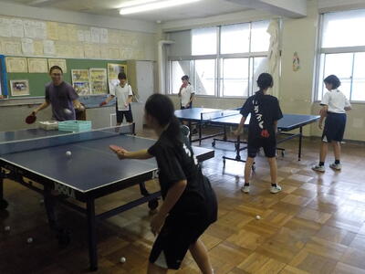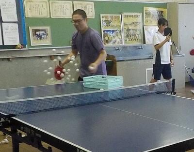 とても暑い中、楽しそうに一生懸命に練習に取り組んでいました。顧問は魔球を操れます(笑)