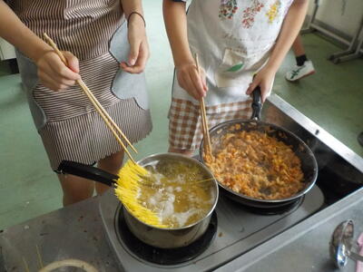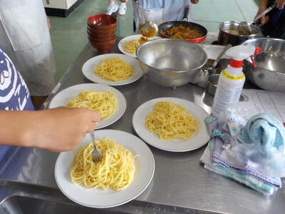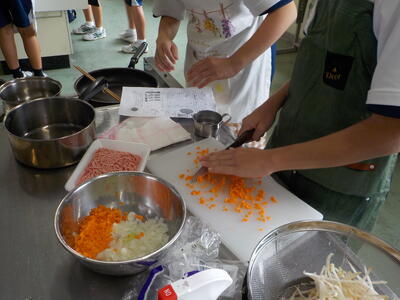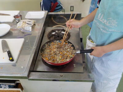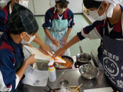 1年生が調理実習をしていました。いったい何を作っているのでしょうか?