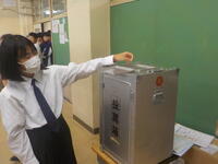 自民党の総裁選挙と同じ日時に、生徒会役員を選ぶ立会演説会、及び選挙が行われました。立候補者は応援弁士とともにリモートで演説を行いました。