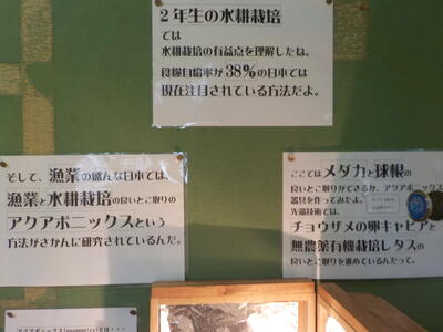 3階の廊下にアクアポニックスのデモが設置してあります。