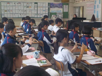 1年音楽です。リコーダーの合奏をしていました。きれいな音です↓