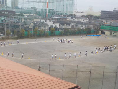 音楽室の窓下に、2年生が長距離走を走っていました。がんばれ~↓