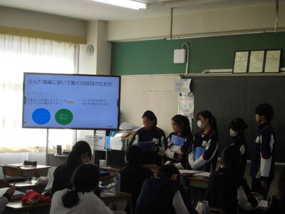 聞く生徒も、自分が興味のある職場を選んで発表を聞きました。どのグループも素晴らしい発表でした。