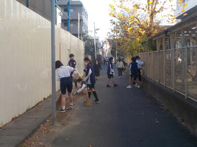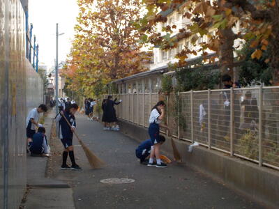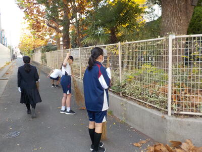 校内だけでなく、地域の方や小学生も通る裏門前の道もきれいにしてくれました。