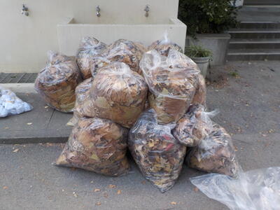 昨日は84人、今日は94人の生徒が早朝からボランティア活動をしてくれました。拾った葉っぱの分だけ、学校も心もきれいになっていきますね。花丸
