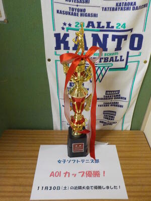 11月30日(土)にソフトテニスの「AOIカップ」で本校ソフトテニス部が優勝しました王冠