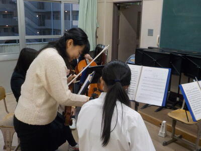 10月1日のブログで紹介した卒業生の「河合」さんが管弦楽部の指導に来てくれています。