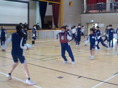 青空の下、全力で逃げて、全力で追いかけていました。後半はドッヂボールです。