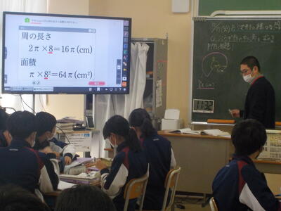デジタル教科書を大型テレビに映しています。資料の活用など分かりやすいです。