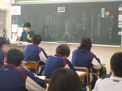 2年生は集会をしていました。 学年職員の自己紹介や鎌倉の校外学習の話などがありました。↓