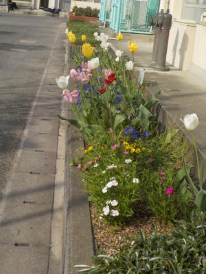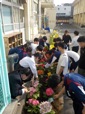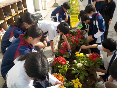 先週の金曜日に美化委員会の生徒が花壇に花を植えてくれました。