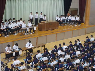 生徒による生徒のための(生徒総会) 投稿日時 : 2024/06/28 第六中学校管理者 本日午後に生徒総会が開かれました。 成立宣言のあと、専門委員長や部長より5年度決算と6年度予算の説明がありました。 生徒たちは議案書をタブレットにダウンロードして総会に臨みました。ペーパーレスですね。