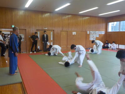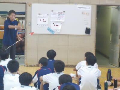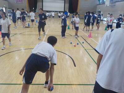 本日の定例研で2年生が市内の先生たちに、体育の授業を見せました。