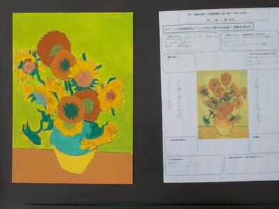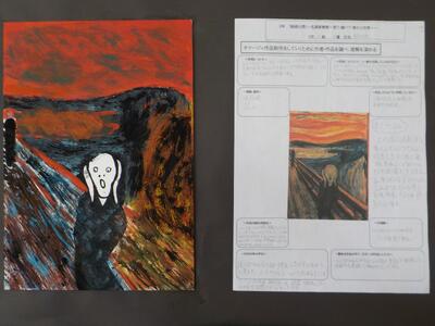 名画新解釈~見て、調べて、新たな世界へ~ の作品が3階のピロティホールに展示されています。