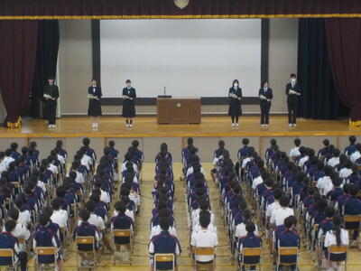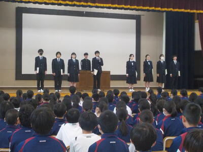 生徒会本部役員、委員会委員長の交代式が行われました。