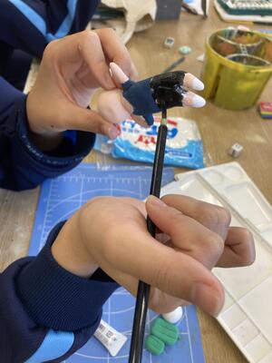考えてる自分の頭の中を 粘土や針金を使って形にしています