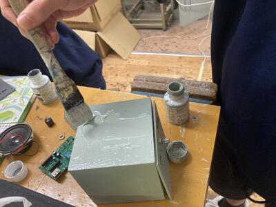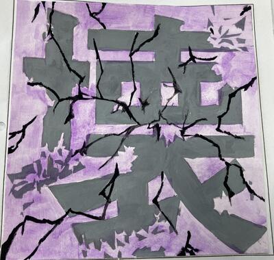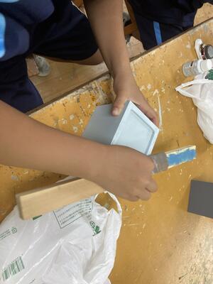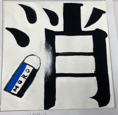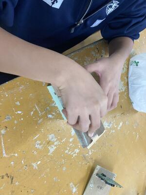 透明のアクリル板に絵を描いて 彫刻刀で削っていきます