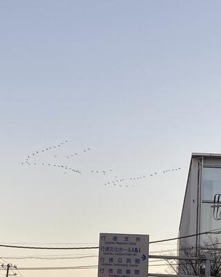 V字編隊飛行と呼ばれる飛び方の鳥たちを見かけます