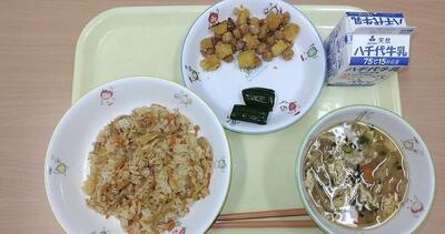 牛乳 ご飯 あぶたま丼(具) 磯香和え スイートポテト