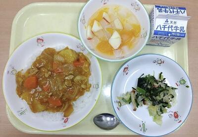 牛乳 ご飯 ポークカレー 海藻サラダ フルーツポンチ