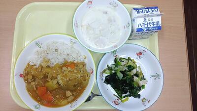 牛乳 ご飯 チキンカレー(具) 海藻サラダ ヨーグルト和え