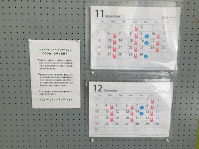 青丸の印の日はスクールカウンセラーの先生がいます。
