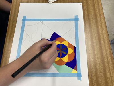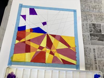 美術で「平面構成」をタブレットを使いながら