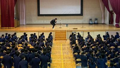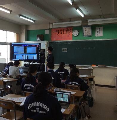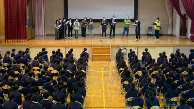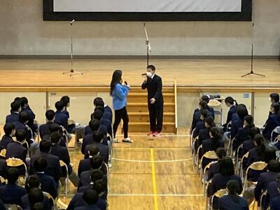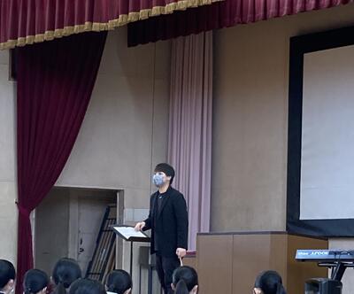 生徒会の生徒がスライドショーで 学校の紹介や