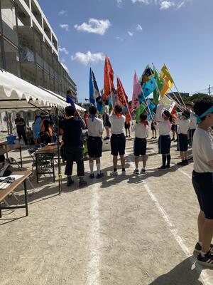 当日は 応援で活躍する学級旗です