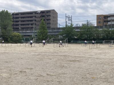 体育の授業でハードル走をしていました