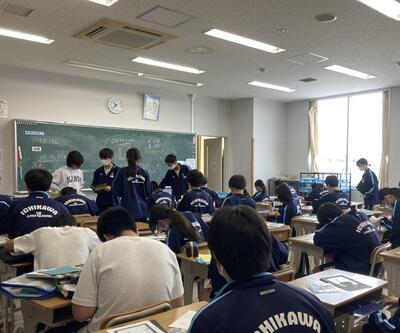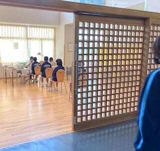 各教科担当のクラスに入って、給食も一緒に食べます。