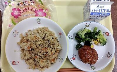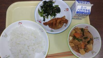 ハート牛乳 ご飯 じゃがいもの含め煮 赤魚のにんにくみそ焼き キャベツひじきサラダ