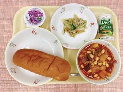 ジョア さつま芋パン ポークビーンズ フレンチソテー グレープゼリー