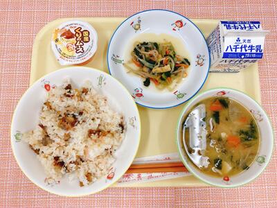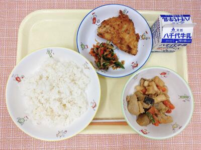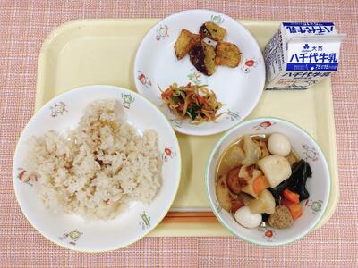 牛乳 茶飯 一口おでん 辛子和え 大学芋