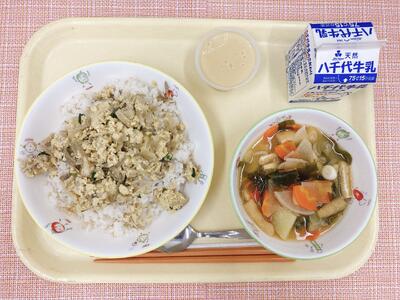 牛乳 ご飯 スペシャル納豆和え 千草焼 のっぺい汁