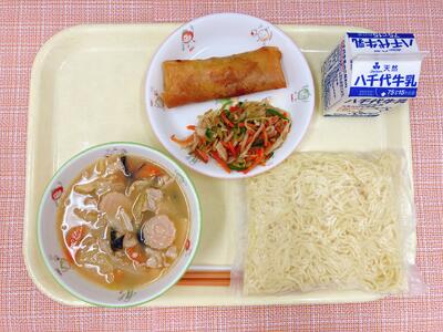 牛乳 ちゃんぽん ウィンナー春巻き 中華サラダ
