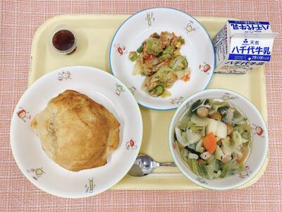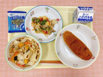 牛乳 ほうとう 焼肉サラダ 青のり小魚 甘納豆パン