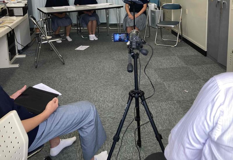 放送室から発信し、各教室でその様子をモニターで視聴しました。