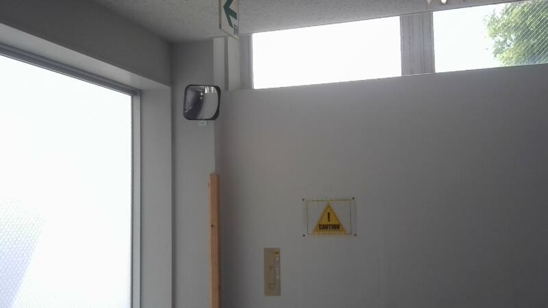 そこで、用務員さんがカーブミラーを設置してくださいました。