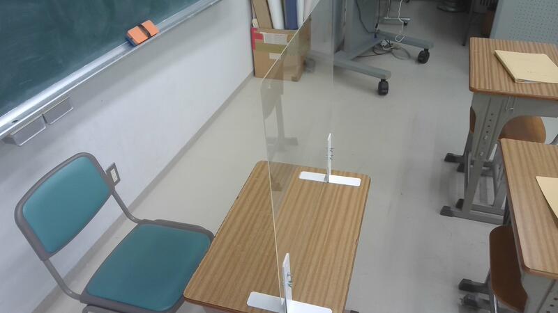 画像にあるようなアクリルを立てて感染防止に努めています。