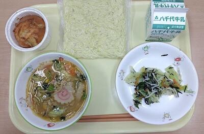 みそラーメン(汁) 水菜ひじきサラダ りんごのマフィン